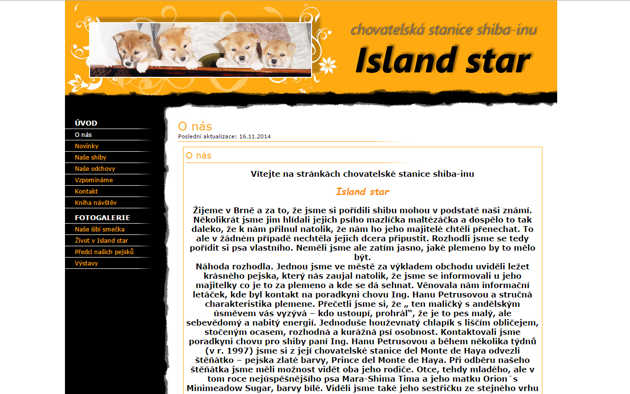 islandstar.cz - webová prezentace chovatelské stanice psů shiba-inu.